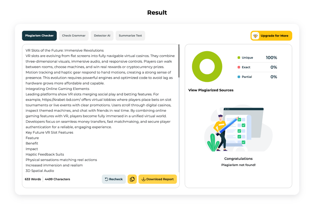 Leading platforms show VR slots merging social play and betting features. For example, https://4rabet-bd.com/ offers virtual lobbies where players place bets on slot tournaments or live events with clear promotions. Users stroll through digital casinos, inspect themed machines, and chat with friends in real time. By combining online gaming features with VR, players become fully immersed in a unified virtual world. Developers focus on seamless money transfers, fast matchmaking, and secure player authentication for a reliable, engaging experience.